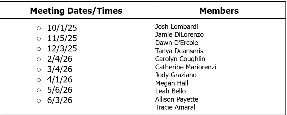 | 9/25 3:15 10/23 8:15 11/30 4:00 1/30 8:15 2/27 3:15 3/26 5:00 4/30 8:15 5/28 3:15 | Jamie Di Lorenzo Tonia Malloy Deirdre Donovan Alisha McKay Megan Hall Stefano Famiglietti Charlene Smith Melissa Sampaio Highlander Chair Amanda Donovan Alex Puleo |
